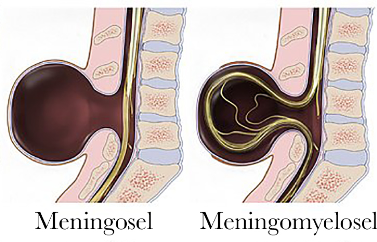 - Meningosel: Kese içerisinde sadece beyin-omurilik zarı ve sıvısı bulunur.